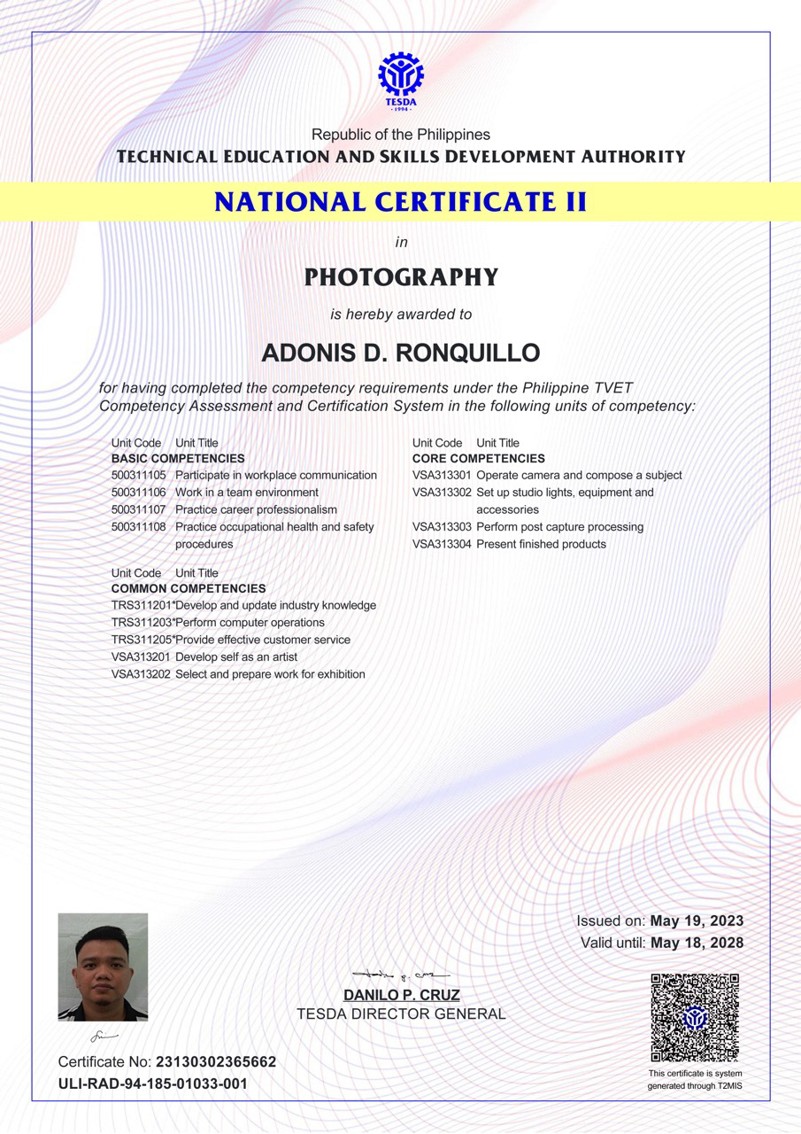 I obtained my National Certificate Program, or NCII, in Photography to improve my photography and videography talents. Ms. Dail Deri Sebastian, the Canon brand representative during my talk, deserves my gratitude.